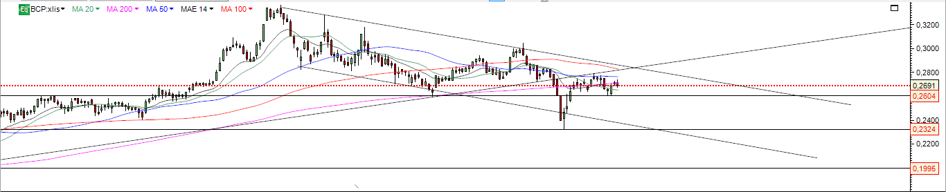 Desde o inicio de 2018, a média dos negocios no BCP foi de 0.2871. Face ao fecho de hoje, 0.2670, temos -7.00%.