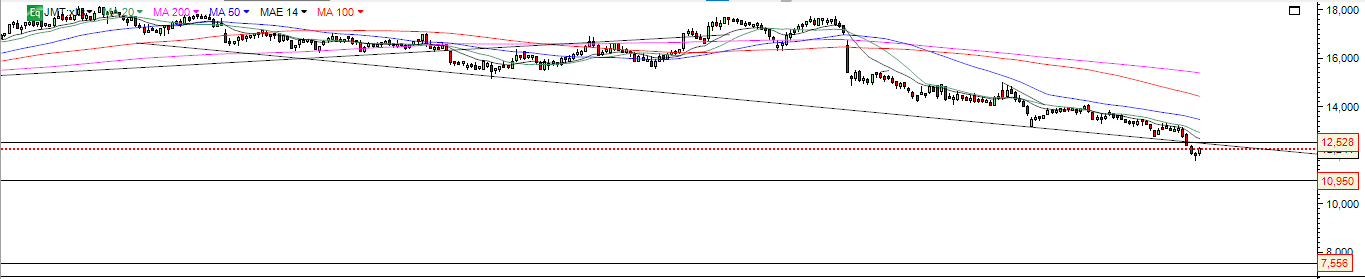 A JMT face aos indicadores técnicos sobrevendidos está aqui a tentar uma potencial recuperação até á zona 12.50-12.60 , antes de provavelmente retomar a correcção , com todas as fracas perspetivas de resultados para dia 25 Julho , e futuras próximas , enunciadas nas analises publicadas na imprensa