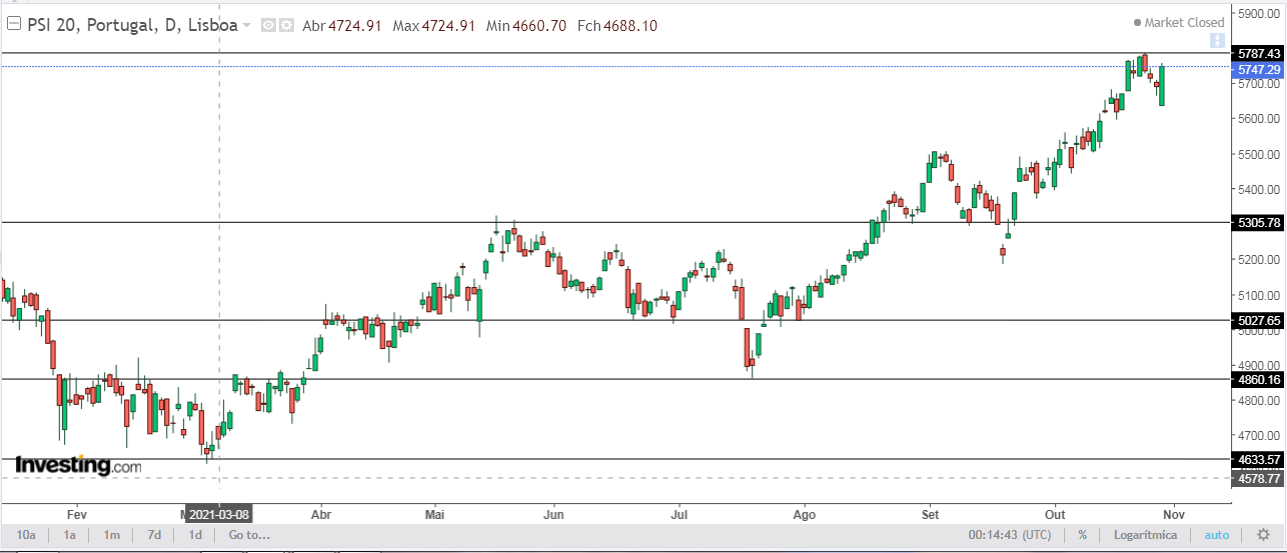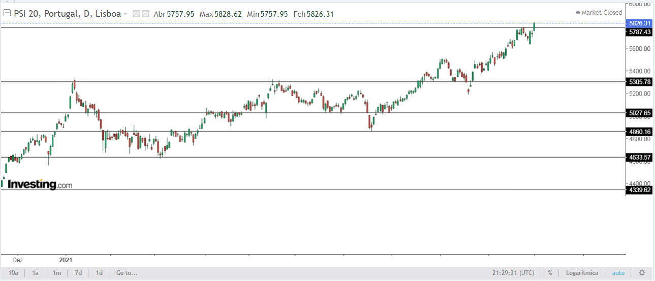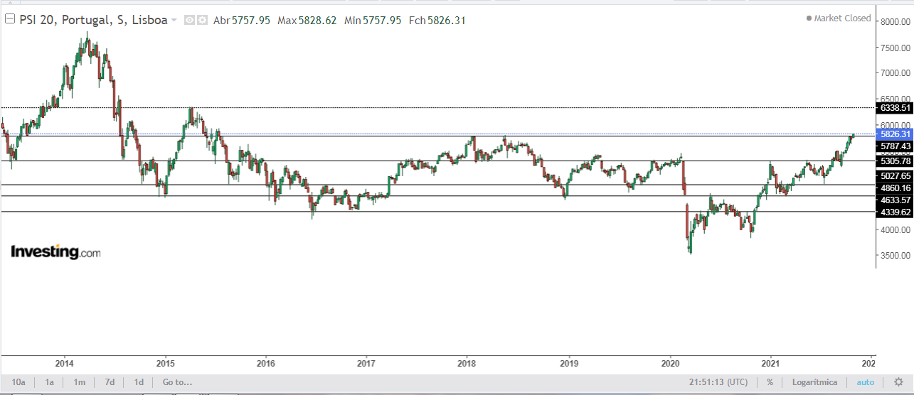 Fechos acima de 5780pts, podem levar o PSI aos 6300pts