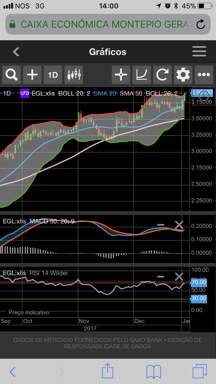 Pelo gráfico, esperava uma descida, suportada pelo comportamento do RSI face ao preço. É o que é. Só tenho pena ter saído há semanas e não estar presente para aproveitar a subida de novo. (fura os 3.80 tranquilamente)