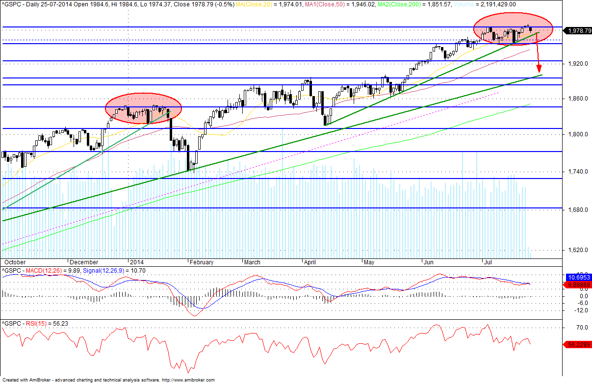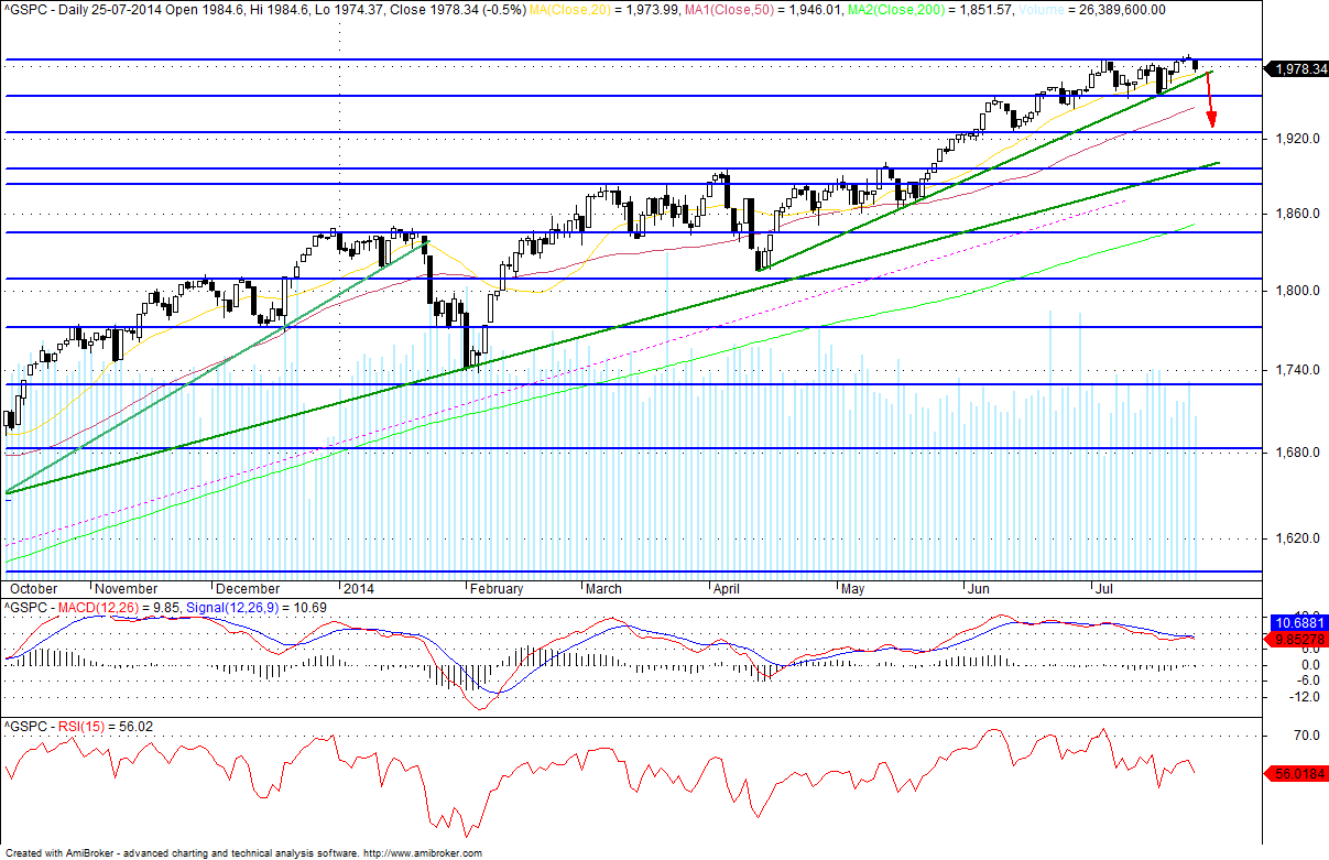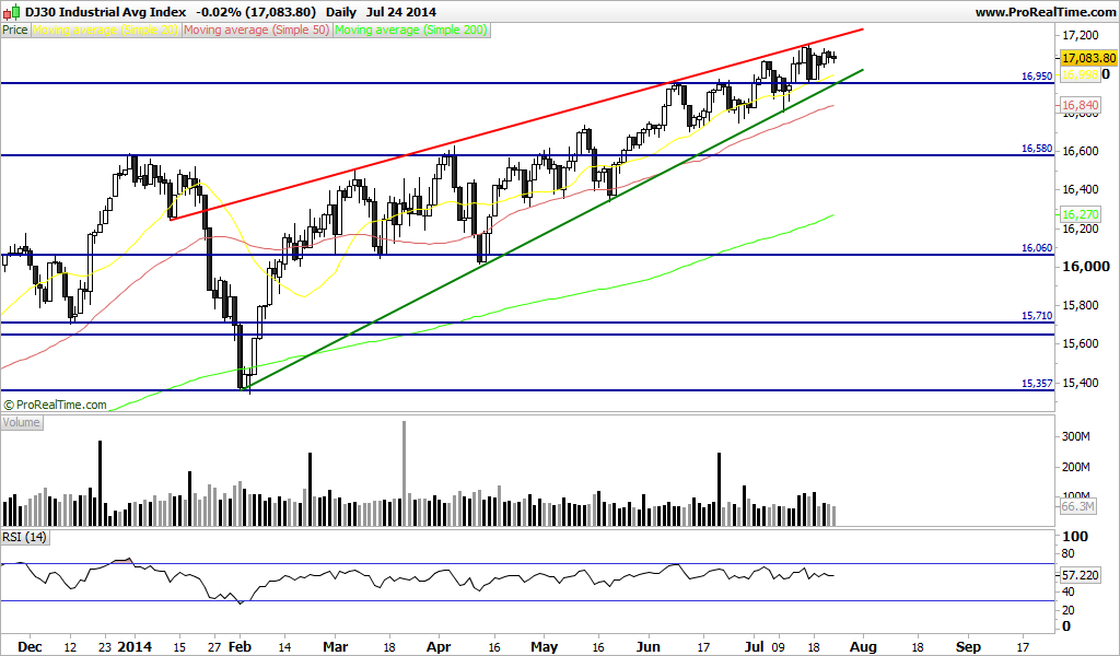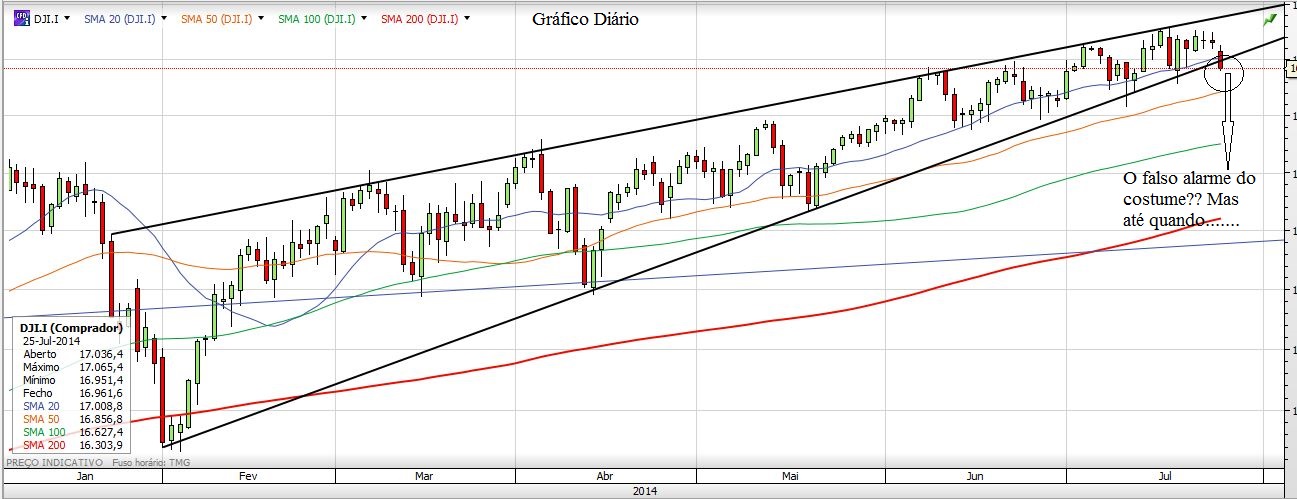 Quanto à Wedge do DJ eu acho que o preço fechou pela primeira vez fora da Wedge. E acho que o destino de queda dos índices americanos está traçado e os dias para isso acontecer estão contados.