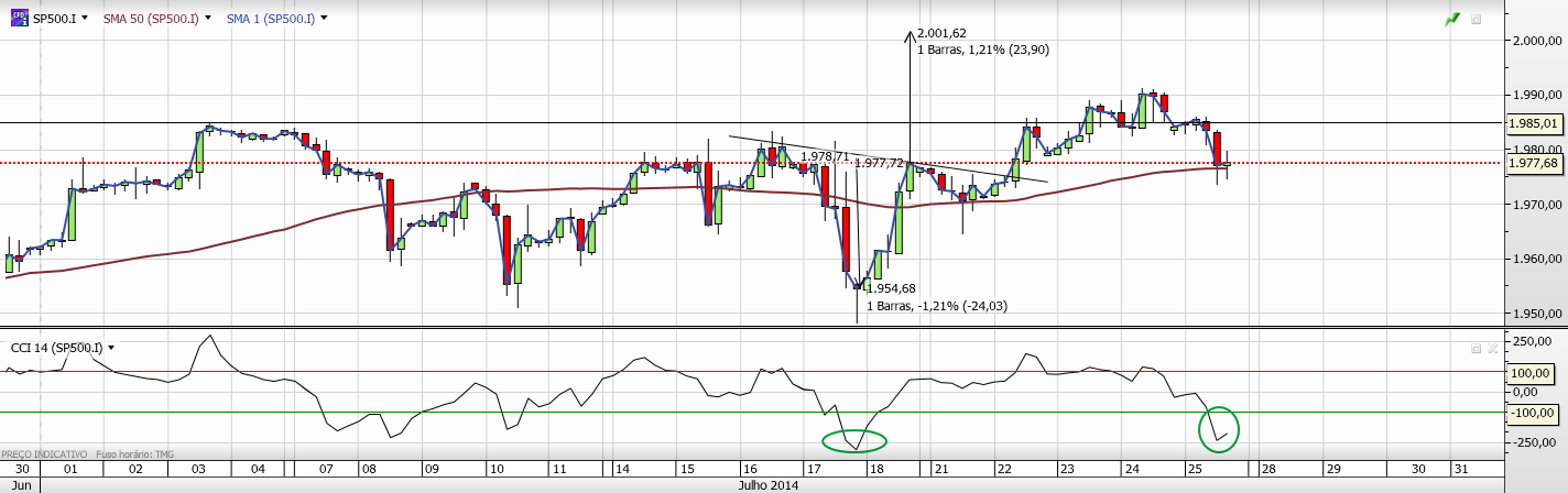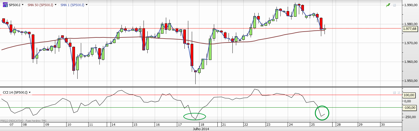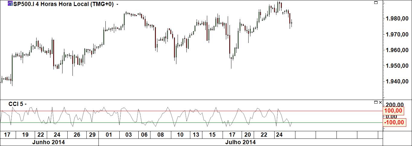 O ressalto do indicador, de qualquer indicador, resulta do ressalto do preço e não vice-versa. Se o preço, no seu normal devir, vai formando níveis, os indicadores farão o mesmo, cada um à sua maneira e em conformidade com a velocidade que lhe seja emprestada. Por exemplo, vejam-se os ressaltos do CCI 5 quando comparado com o CCI 100.