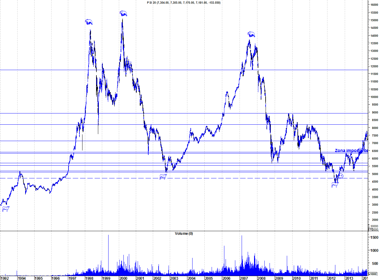 Como nos mercados tudo é possível, se o referido máximo for ultrapassado, a próxima zona a vigiar será em torno dos +/- 8400 pontos.