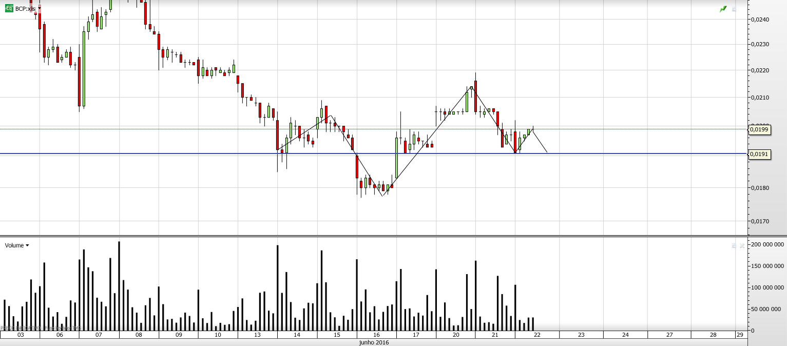 O mais importante em relação ao BCP seria parar esta queda e aparentemente a cotação acalmou um pouco apesar de ainda se verificar uma grande volatilidade.