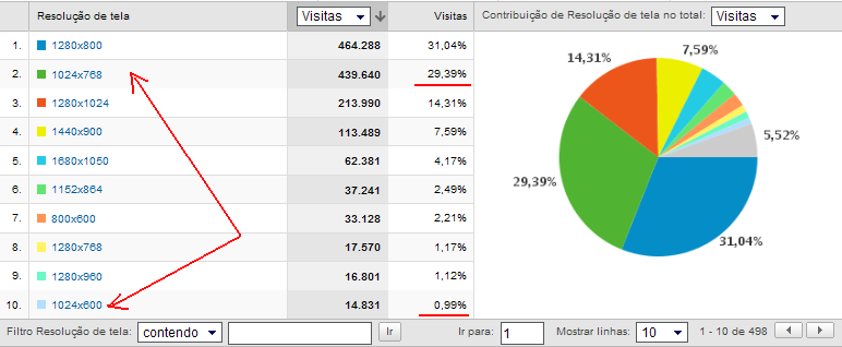 Já agora, deixo aqui uma tabela com as visitas dos ultimos meses e como se distribuem em termos de resolução: