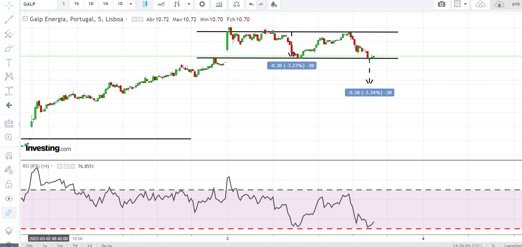 Gráficamente galp deve voltar aos 11 no gráfico 5 minutos esta a desenhar isso