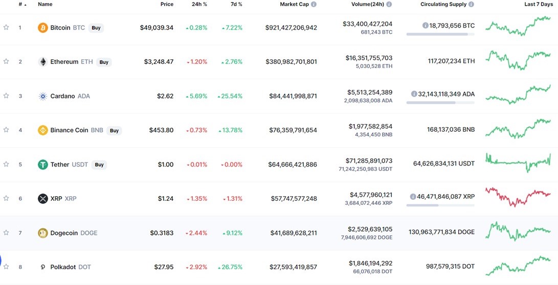 Cardano e Ethereum (o futuro mais expressivo dentro das tech BlocChain), valorizam-se ainda mais e Ether já é o leader de transações na Coinbase e em usd coin (stable coin Coinbase - nº9 no ranking).