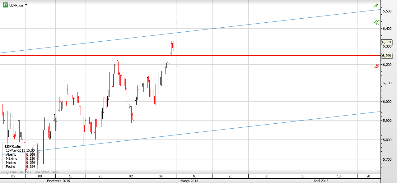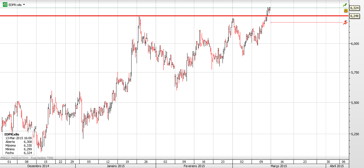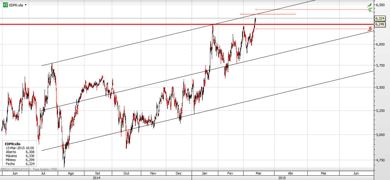 Tendo a cotada EDPR quebrado máximos relativos recentemente, confesso que me encontro algo dividido entre fechar a posição na CML ou esperar que ela vá de encontro à UMLH. Terei de aguardar a reacção à CML, se lá chegar é claro! Seguem os gráficos...
