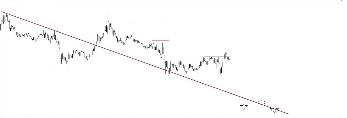 Após ter namorado a UMLH lá se decidiu a caminhar no sentido da posição, aproximando-se do 1.º target. Mais uma vez baixando a stop profit para o pivot relevante.