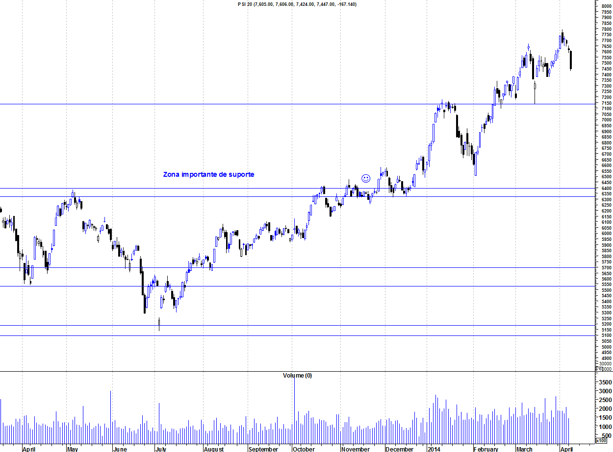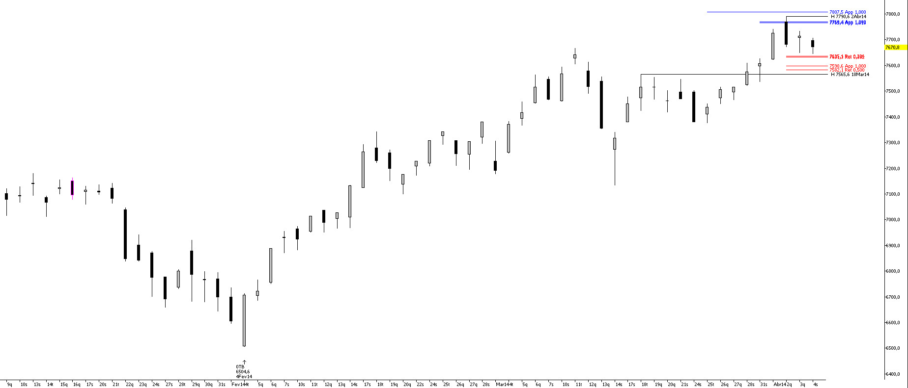Rompimento dos 7565 (máximo do dia 18/03/2014)... ai ai ... é que foi vê-la a cair