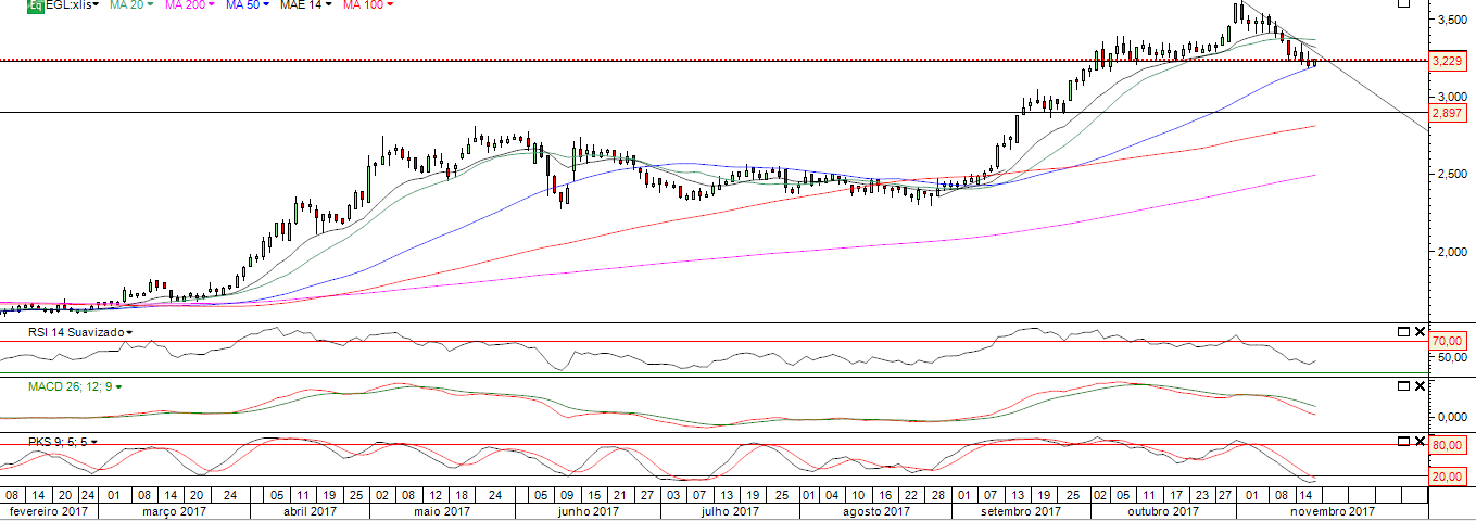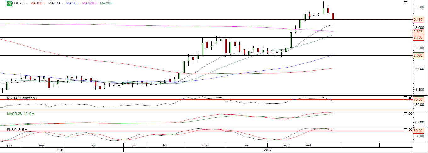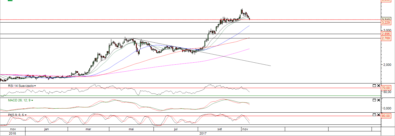 De qualquer forma a zona dos 2,90-3,00 é para se olhar com muita atenção, pois até aí, no meu entendimento, tecnicamente o título se mantém BULL se não houver uma quebra consistente nessa zona. Seria bom para o título, a se confirmar, que essa zona demorasse algum tempo para ocorrer, pois assim a consolidação seria mais eficaz.