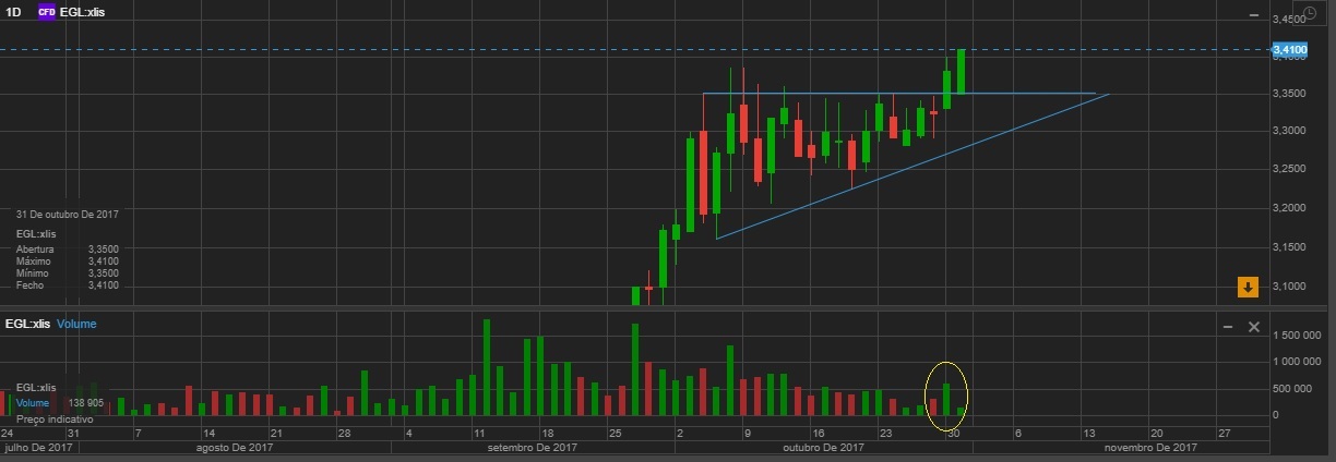 Quanto à ME o volume está muito fraco para um breakout. É provável que nos próximos dias desça até aos 3.3-3.40 eur. Falta sair mais uma notícia para ajudar o volume a aparecer.
