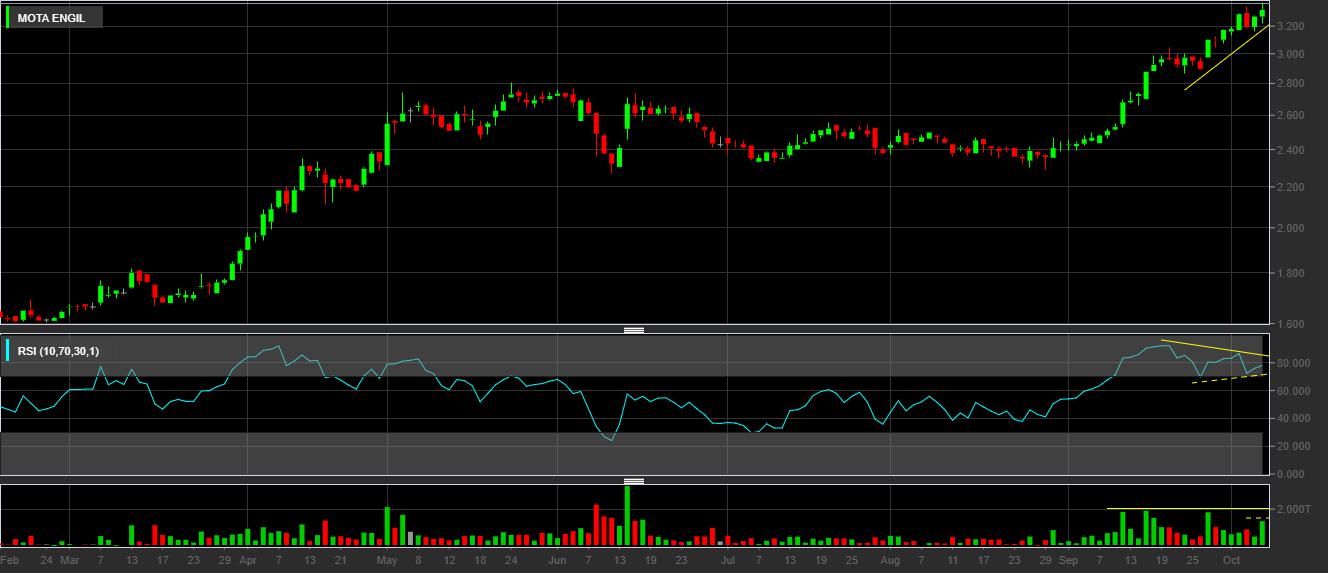 Talvez a Mota suba muito por efeito da convicção de que vai cair. Sim, parece cara, mas, como bem sabemos isso não significa grande coisa. A tendência ascendente está intacta e para que deixe de estar será necessário haver vendedores que aguentem os compradores.