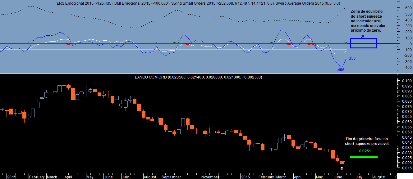 Permitam-me adiantar que, de acordo com os indicadores que tenho utilizado para estudar o comportamento recente do BCP, estou em crer que a onda A preliminar que fará terminar a força de inércia do atual “short squeeze” se deverá esgotar próximo da cotaçao de 0.0251, o que está mais ou menos dentro da previsao que tal deveria ocorrer num intervalo entre os 0.023 aos 0.028.