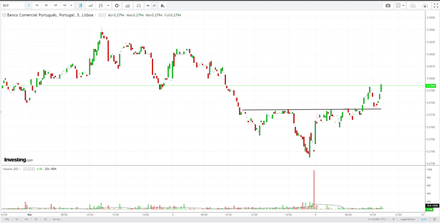 COm a tendência a dominar completamente e tal como prevista a vinda á zona de suporte 0.275 , e com as taxas de juro da republica continuamente a subirem ( BCP reforçou forte na divida da republica desde o inicio do ano ) , a probabilidade maior será manter o sentido descendente .