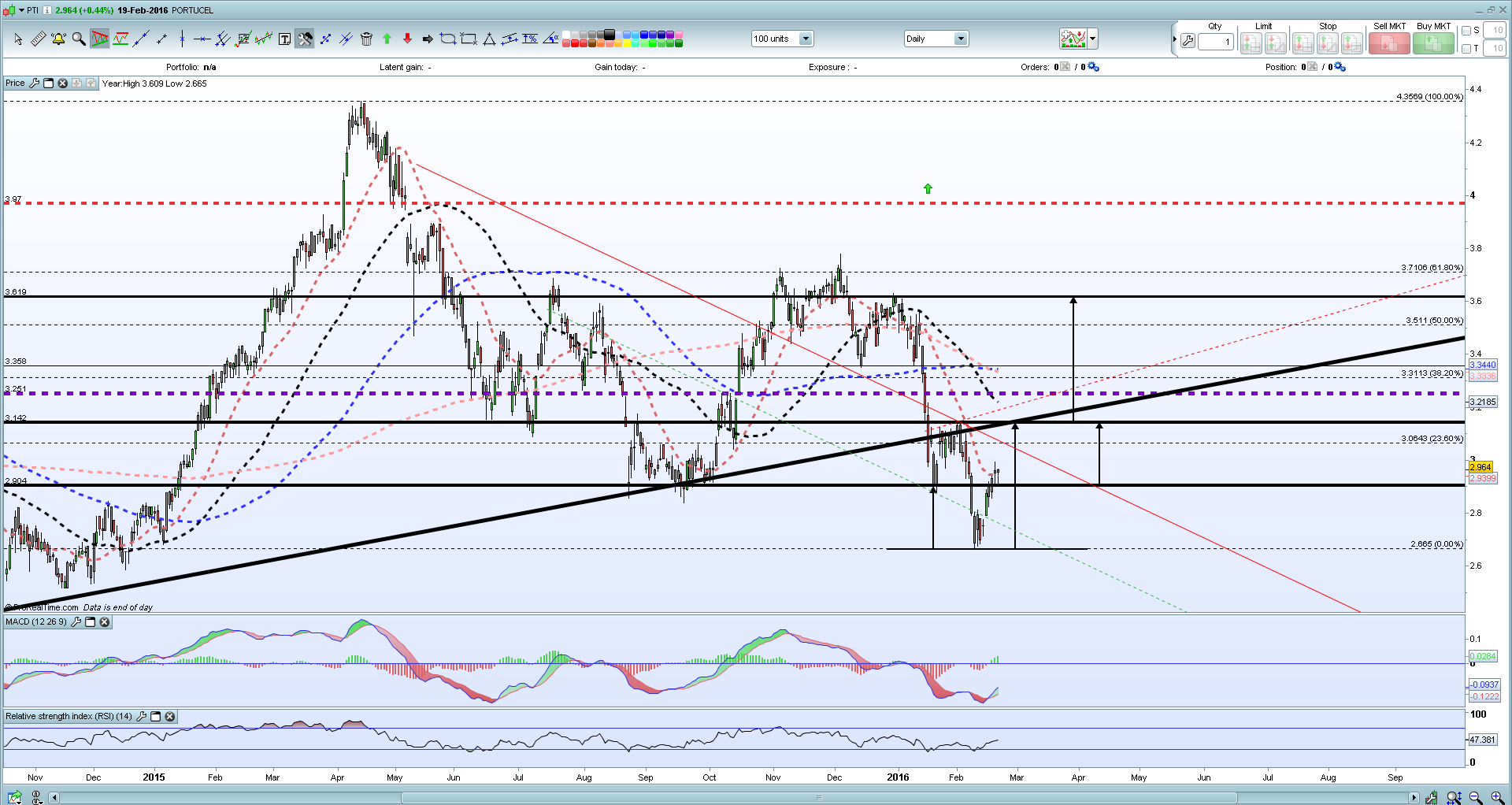 De forma que na minha humilde opinião, neste momento penso que a entrada na Portucel apresenta um bom risco/retorno, pois considero que o potencial de descida limitado face ao potencial de subida. Penso que dentro de um ano a cotação poderá atingir os 4 euros