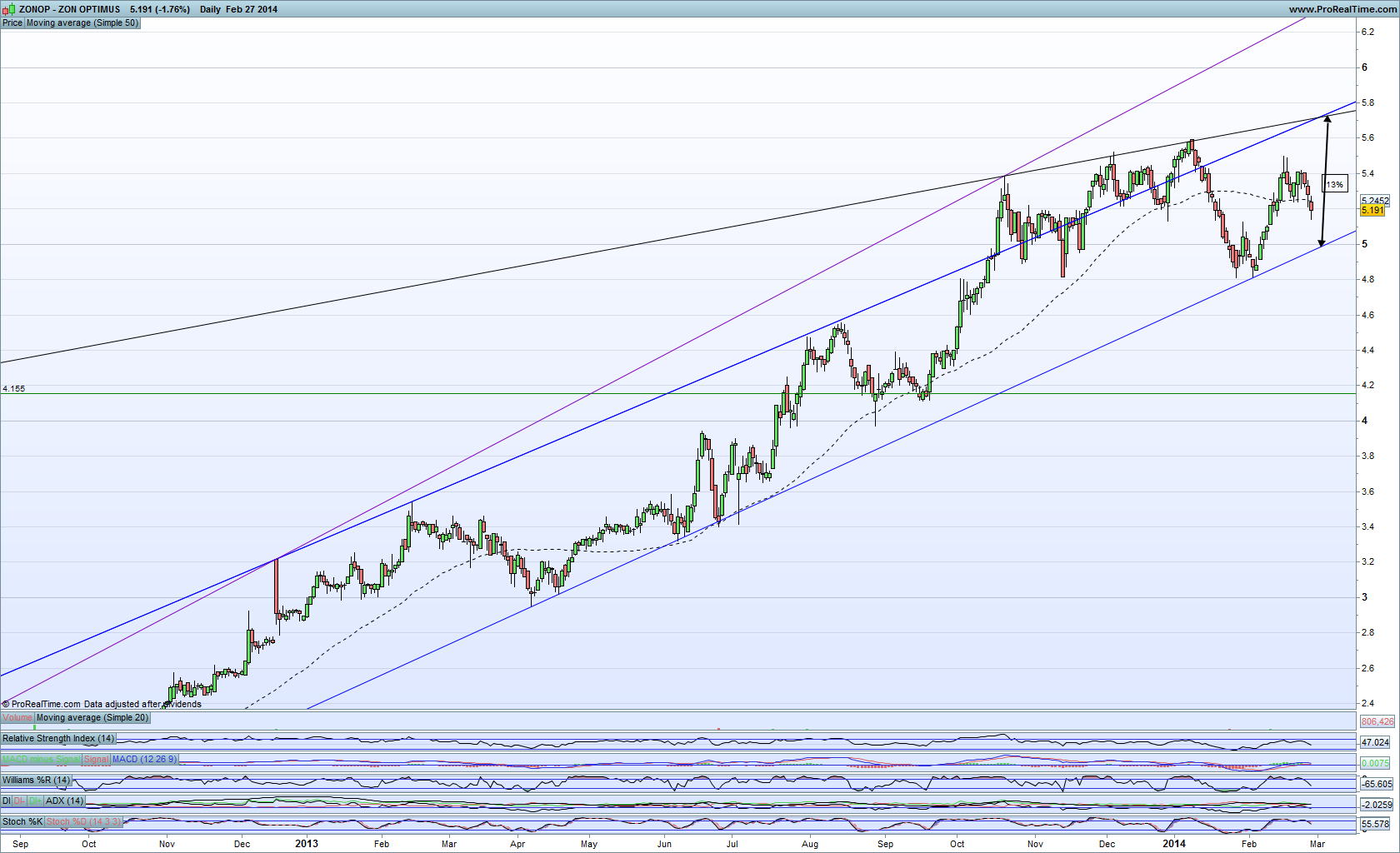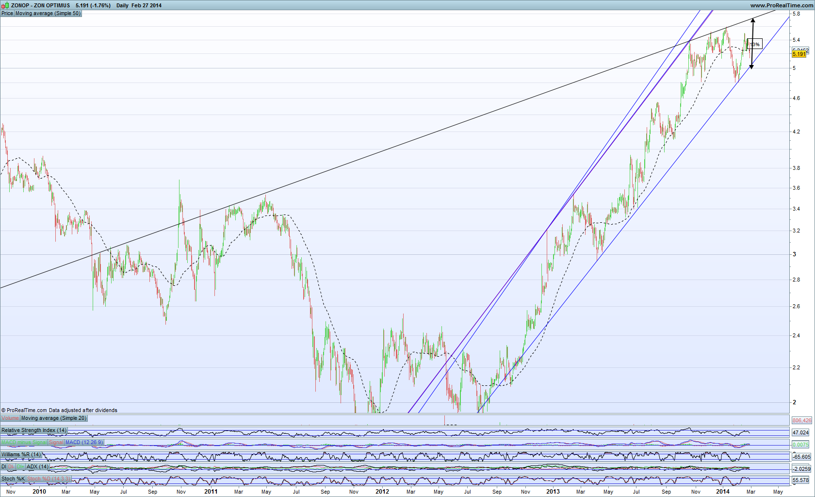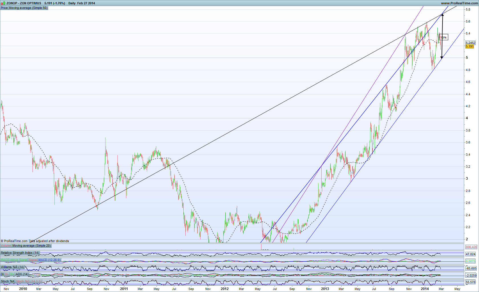 - Tentei replicar a tua linha superior a roxo, mas no meu gráfico, não se dá o 3º toque (que seria o 2º, a fev 2013).