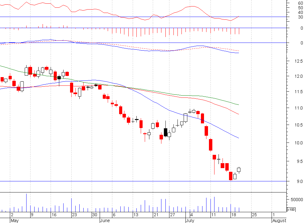 Parece que está a ter dificuldades na resistência dos 15 Euros. Ontem em dia de forte alta perdeu quase 1%. Hoje já vai nos 14,645 com uma queda de 2,20%.