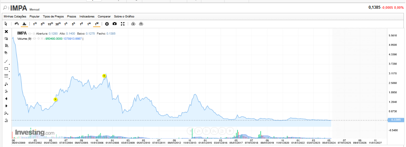 Mas não é a única cotada que o mercado sinaliza como estando em risco de falir. A Impresa é outra!