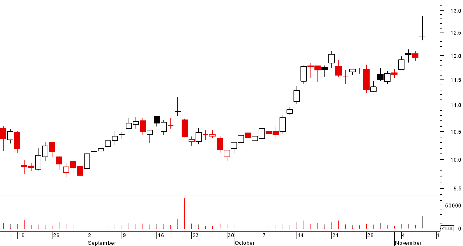A última vez que vim aqui falar da Arcelormittal tinha ela acabado de quebrar a zona de resistência dos 10,7~10,9 com uma sucessão de gaps que me deixou de pé atrás. No entanto esta acção acabou por continuar a mostrar força, indo rapidamente testar a zona de resistência seguinte, nos 12,4~12,8. Após duas tentativas de quebra sem sucesso, acabou por corrigir cerca de 11% e na última semana recuperou tudo o que tinha perdido, fechando hoje com uma vela bonita, em máximos da sessão e muito perto do anterior máximo relativo. Entretanto tem vindo a definir uma LTA, confirmada nesta recente correção e apesar de o volume de hoje não ser nada de especial, parece-me que está confirmada a tendência altista. A próxima resistência que identifico está nas imediações dos 15,7.