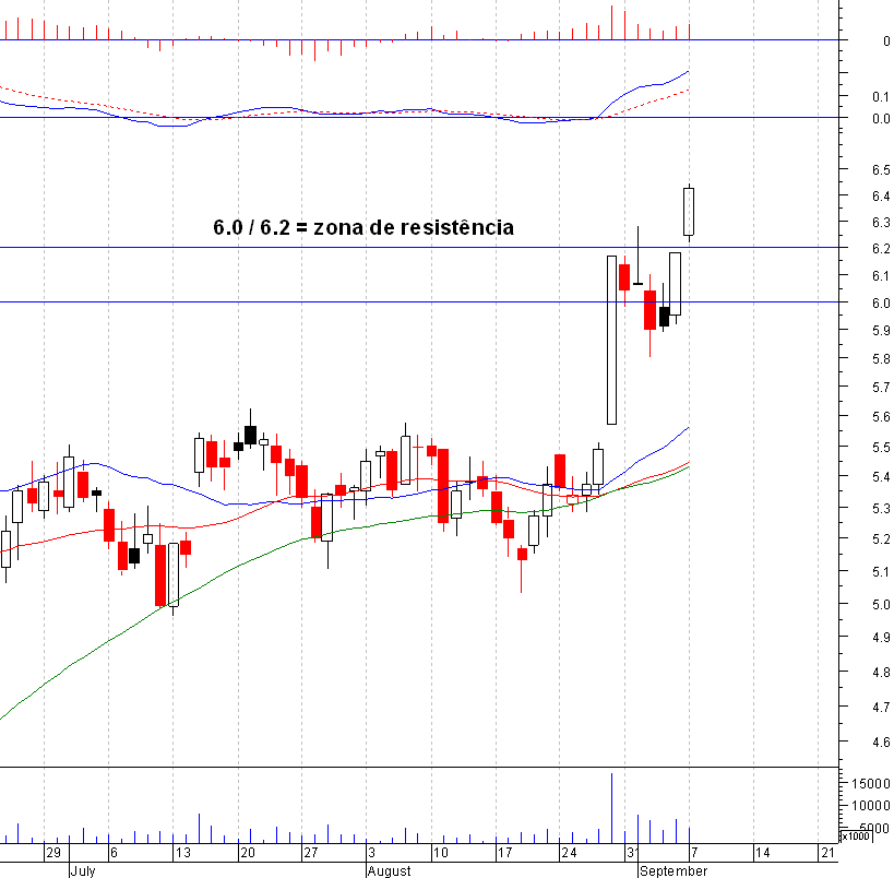 Mas lá está, para o investidor mais avesso ao risco ou para aqueles que necessitam de mais confirmações, a espera da quebra em alta dos € 6,80 é mais recomendada.