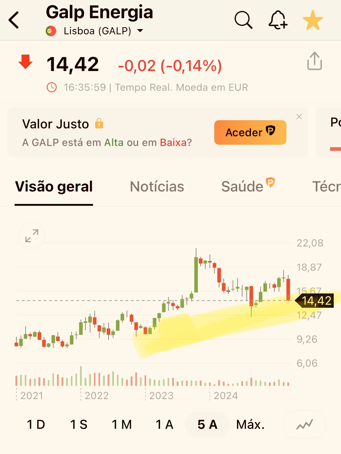 o que vejo no gráfico de longo prazo é uma LTA com suporte na zona dos €14,40