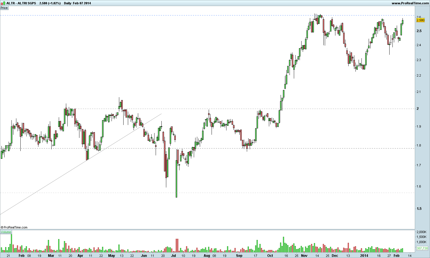 Boas, RSacramento. Tenho 'andado a fazer uns riscos no PSI' tendo precisamente em (passe a força de expressão) análise os seus suportes e resistências de 2010. Fica-me a ideia que a Altri vai quebrar a resistência que assinalas -e muito bem- depois de o PSI ter vencido uma resistência (agora novo suporte) que ludibrio nos +/- 6700 pontos (estou a arranjar pachorra para postar no tópico do PSI este inspiradíssimo e até algo alucinado, estudo).