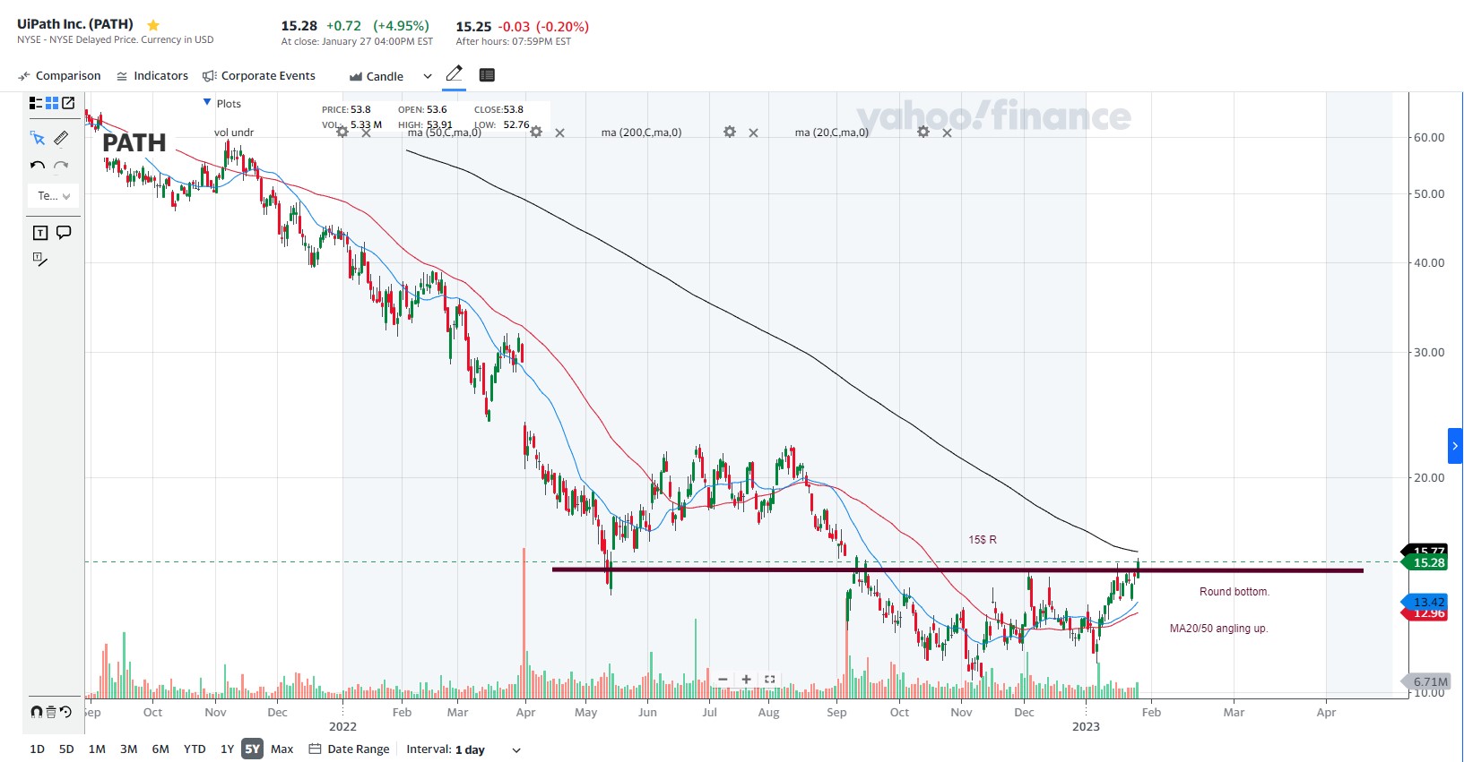 Prendi-me um pouco mais nalguns títulos que "pesquei" no tópico "Nighttrading on the Big Apple" aqui do Caldeirão, que é diga-se dos tópicos com mais interesse ou sumo, onde já estou inclusivé investido nalgumas posições. Nos posts seguintes vou colocar alguns gráficos, já anotados, com as ideias que me pareceram mais interessantes; contudo reforço novamente que a maioria desses títulos estão com aparências muito similares.
