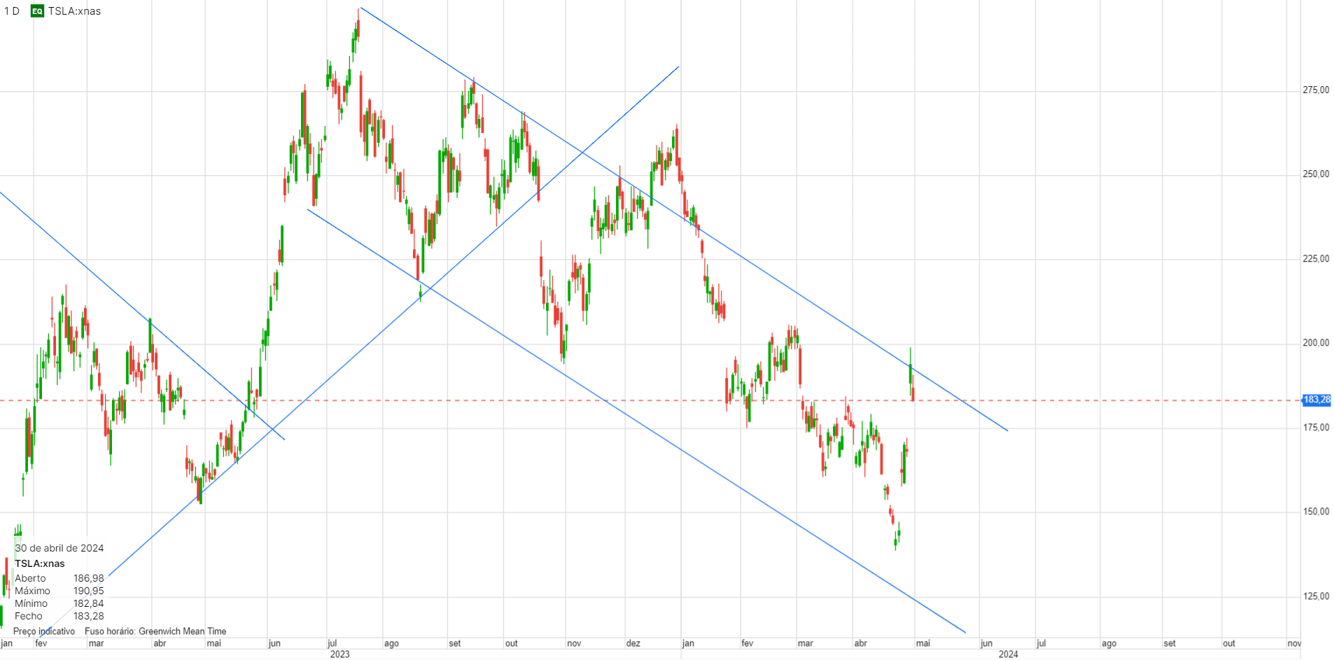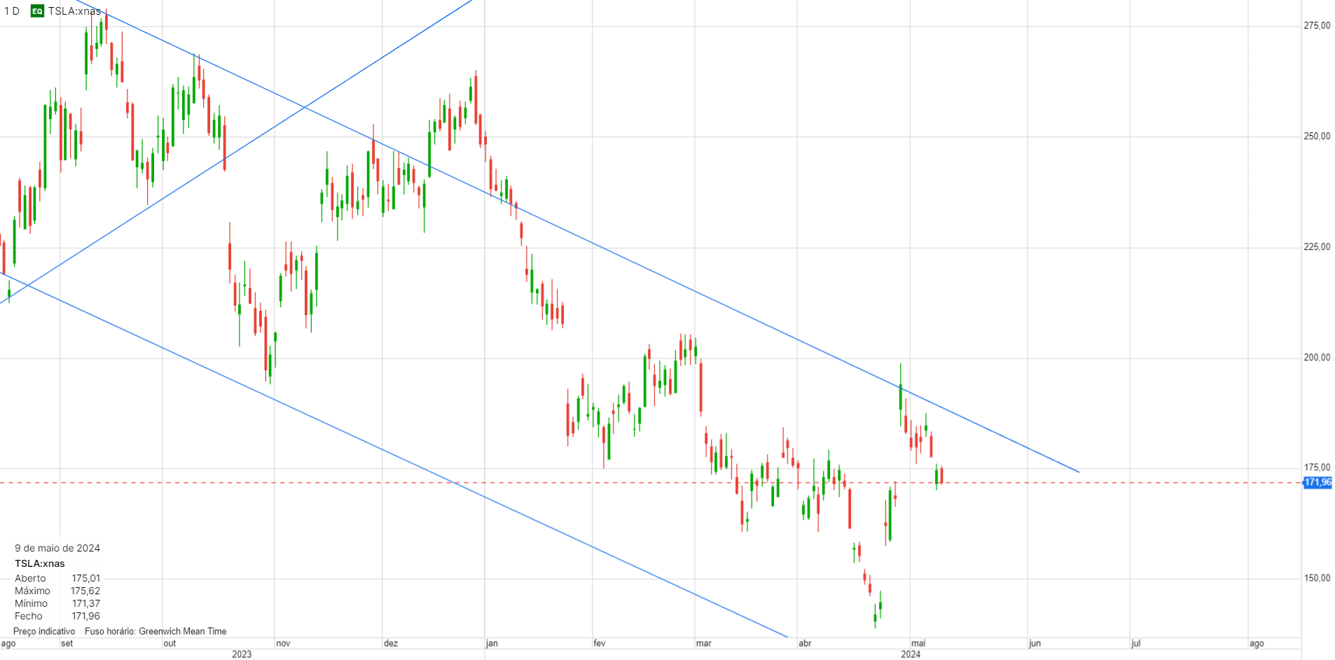 Tesla hoje abaixo dos 160 dolares, em mínimos de cerca de um ano.