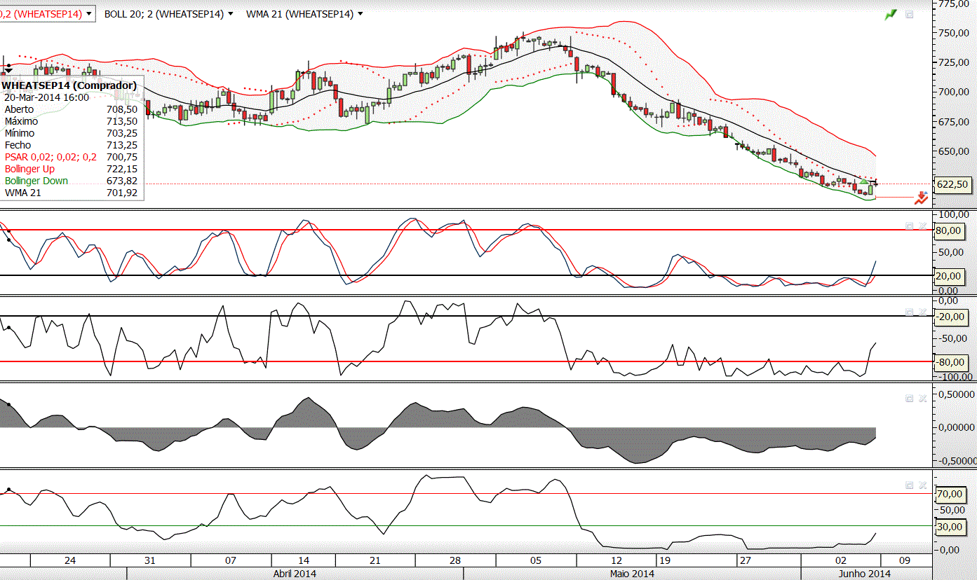 Não vejas neste comentário um qualquer juízo crítico aos negócios que tens em curso, mas apenas um desafio. Os nossos negócios são os nossos negócios e de mais ninguém (pelo menos enquanto não tivermos outro tipo de responsabilidades). Pegando no gráfico do trigo, se usasses essa argumentação, que agora te levou a comprar, também não terias comprado da última vez que os indicadores saíram da zona de sobrevenda? E o que é que sucedeu de seguida?