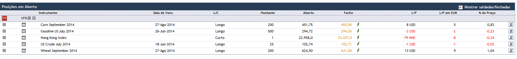 Motivo para o fecho de posições: