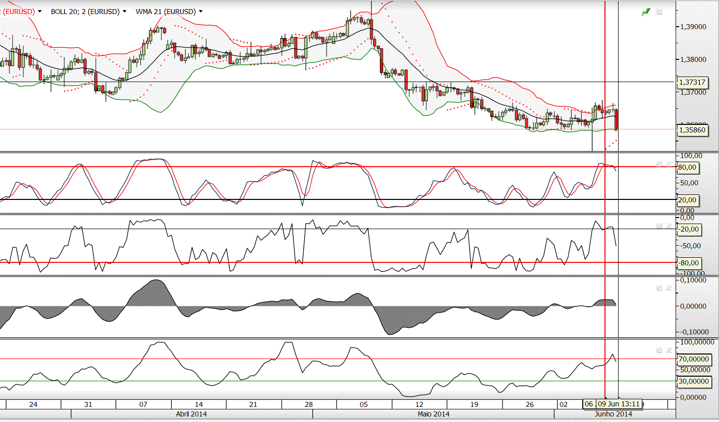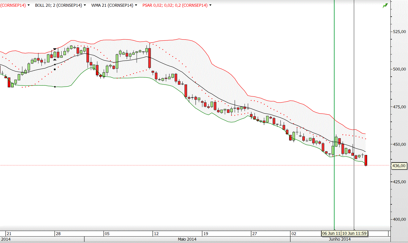 Não está posto de parte uma reentrada curta caso a cotação "rompa" em baixa essa banda inferior.