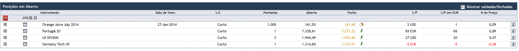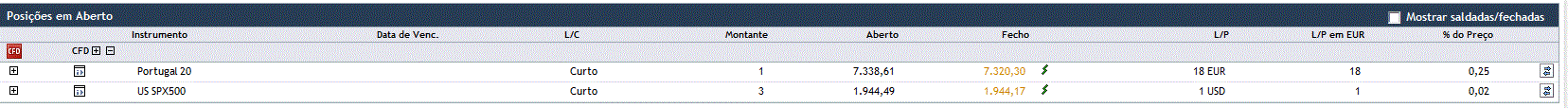Durante o dia de hoje (manhã e tarde) não foram abertas quaisquer outras posições nem encerradas nenhumas das detidas.