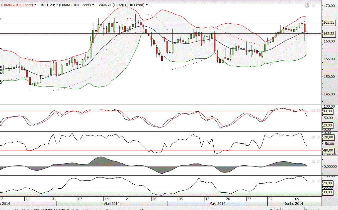 - Não ultrapassou a resistência por volta dos 165,35 que se fixou no mês de Abril;