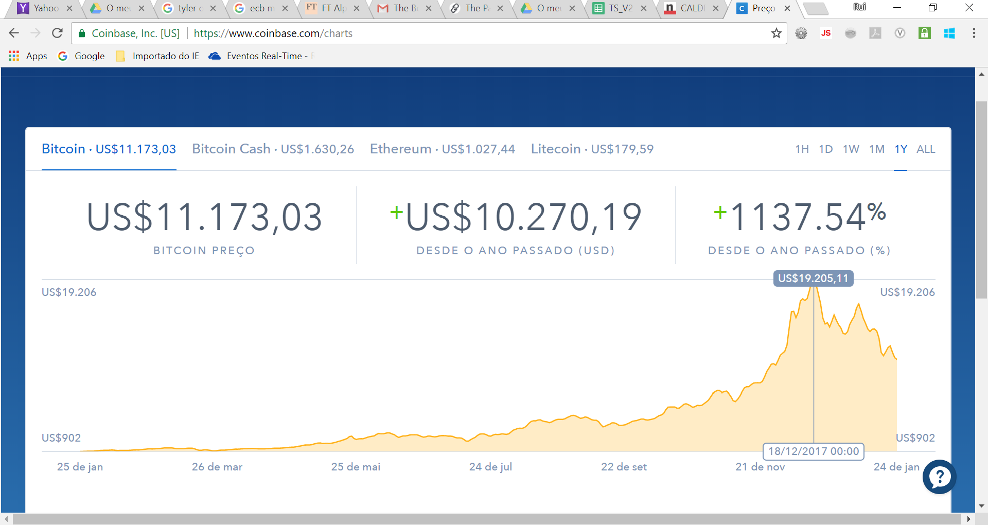 Ulisses Pereira Escreveu:Os sinais são cada vez maiores e não podia não escrever sobre o tema, mas obviamente que poderia ter escrito aquilo há um mês atrás. Foi uma feliz coincidência o artigo ser publicado na Segunda e em 3 dias já ter caído 30%. Mas com a volatilidade disto, não sabemos ainda como termina a semana. Mas os sinais de topo da Bolha estão por todo o lado. E ler os fóruns de Bitcoins mostra bem o nível de euforia e complacência existentes ainda. O medo virá mais tarde.
