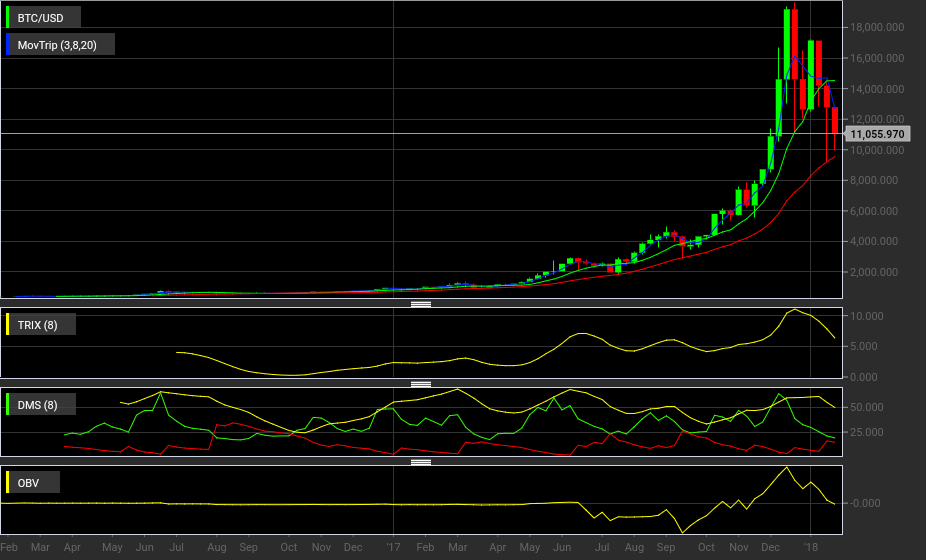 Venda?Ainda não vejo nada pelo gráfico semanal,apenas um lateralizar do ADX mas ainda na compra,MMs laterais e a 20 a servir de suporte,até o OBV está zerado.Creio que mais uma ou duas semanas poderemos dizer se a bitcoin entrará em Bear ou continuará Bull