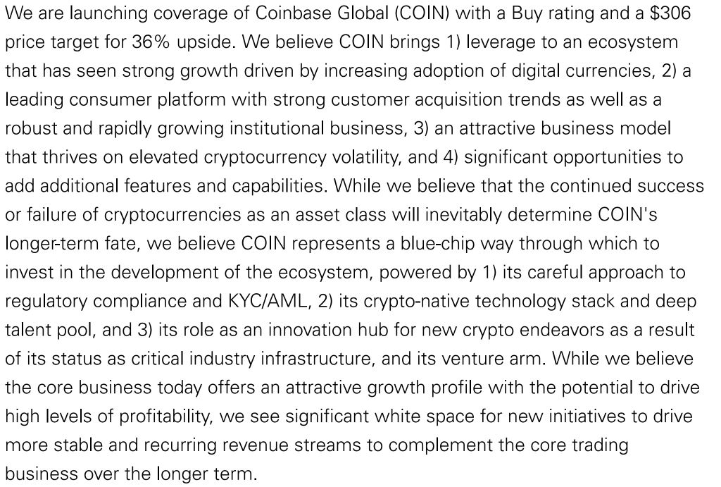 Fresquinho, pela manhã, acabadinho de chegar à minha inbox, Goldman Sachs inicia research s/ $COIN e publica as suas primeiras 50 páginas.