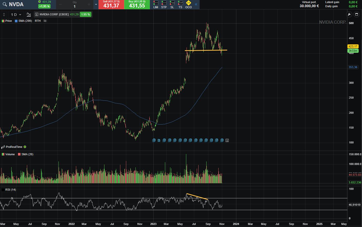 se o mercado tivesse subido 2% a nvidia talvez tivesse subido 15%... assim ficou na linha de água.
