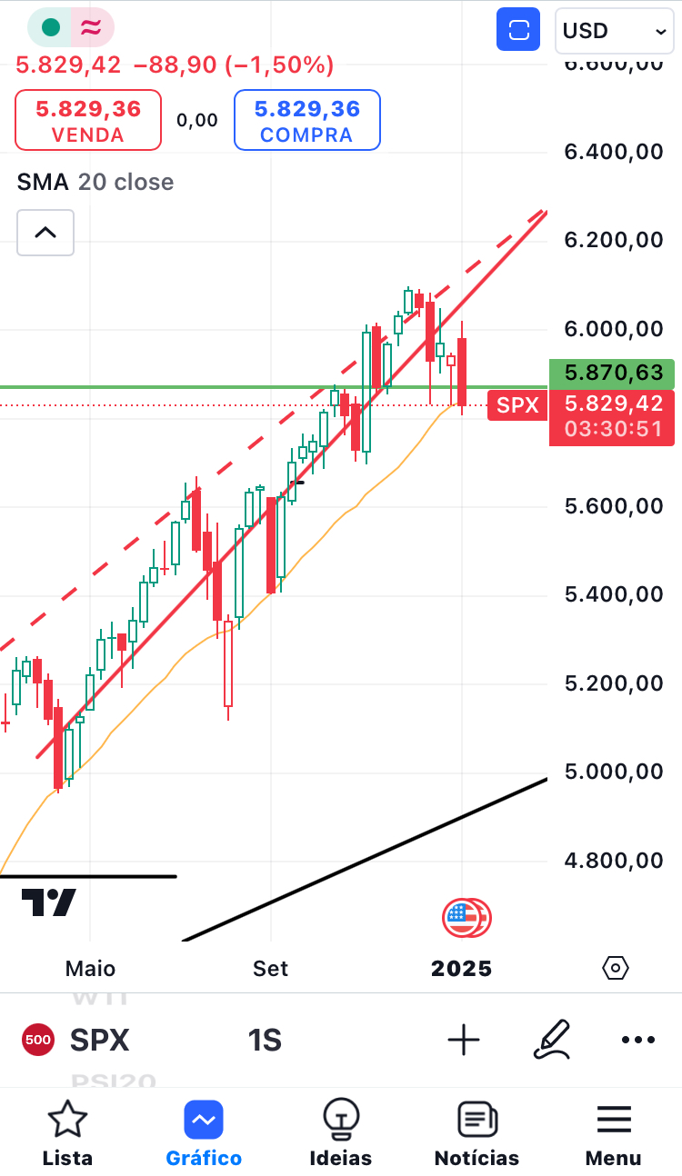 Pelo lado positivo: ainda nunca desceu 4 meses seguidos desde 2020. No curto prazo, desenhou uma cunha descendente com objetivo a 6438 e hoje rompeu a linha de resistência em alta.
