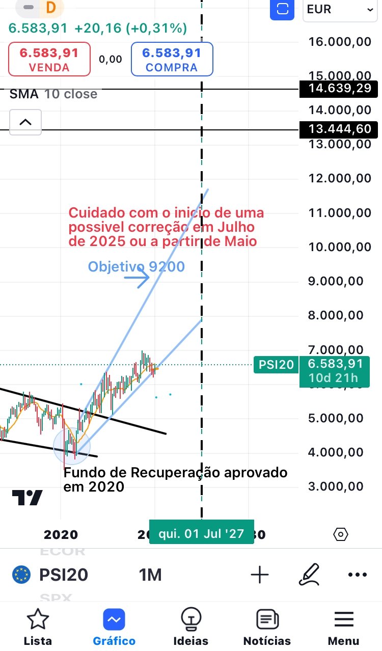Ainda tenho o aviso no gráfico do PSI para ter cuidado com uma possível correção daqui a uns meses, mas agora coloquei uma linha vertical a 1 julho de 2027 pq estou a começar a pensar que pode subir até ai por causa de um padrão que identifiquei num indicador. Esse padrão é semelhante ao que me levou em junho de 2023 a prever que o PSI ia subir mais de um ano. Não é exatamente o mesmo padrão, fiz uma alteração num dos parâmetros do indicador, mas acho que tem semelhanças e isso também me faz um pouco de sentido porque o sentimento otimista está baixo e o PSi ainda está muito longe dos máximos de 2007 e 2000. Isto faz mais sentido se subir nos próximos meses. Se isso acontecer, vai ser ainda mais alguns anos em que quem não tem muito conhecimento pode ganhar e sentir que percebe muito do assunto.
