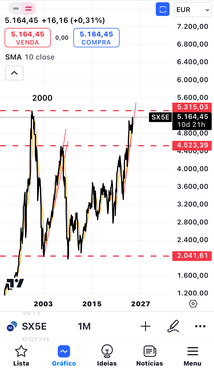 O Euro Stoxx 50 também está a aproximar-se do máximo historico. Continuo a pensar o que disse em cima em Novembro