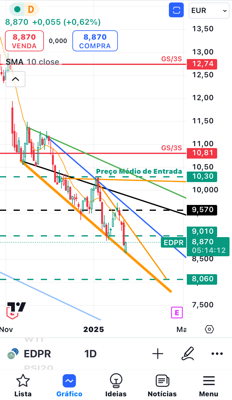 A edp tem uma linha de suporte importante perto no gráfico mensal