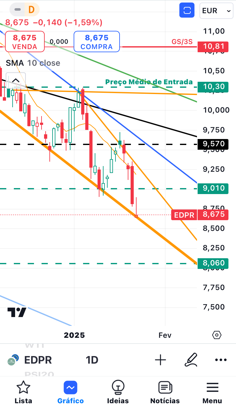 Algumas ações têm descido, como a EDPR e a DHER, mas ainda acredito nelas. No entanto, se os índices continuarem a subir e elas não acompanharem, vou acabar por vendê-las. Mas ainda acho que isso não vai acontecer.