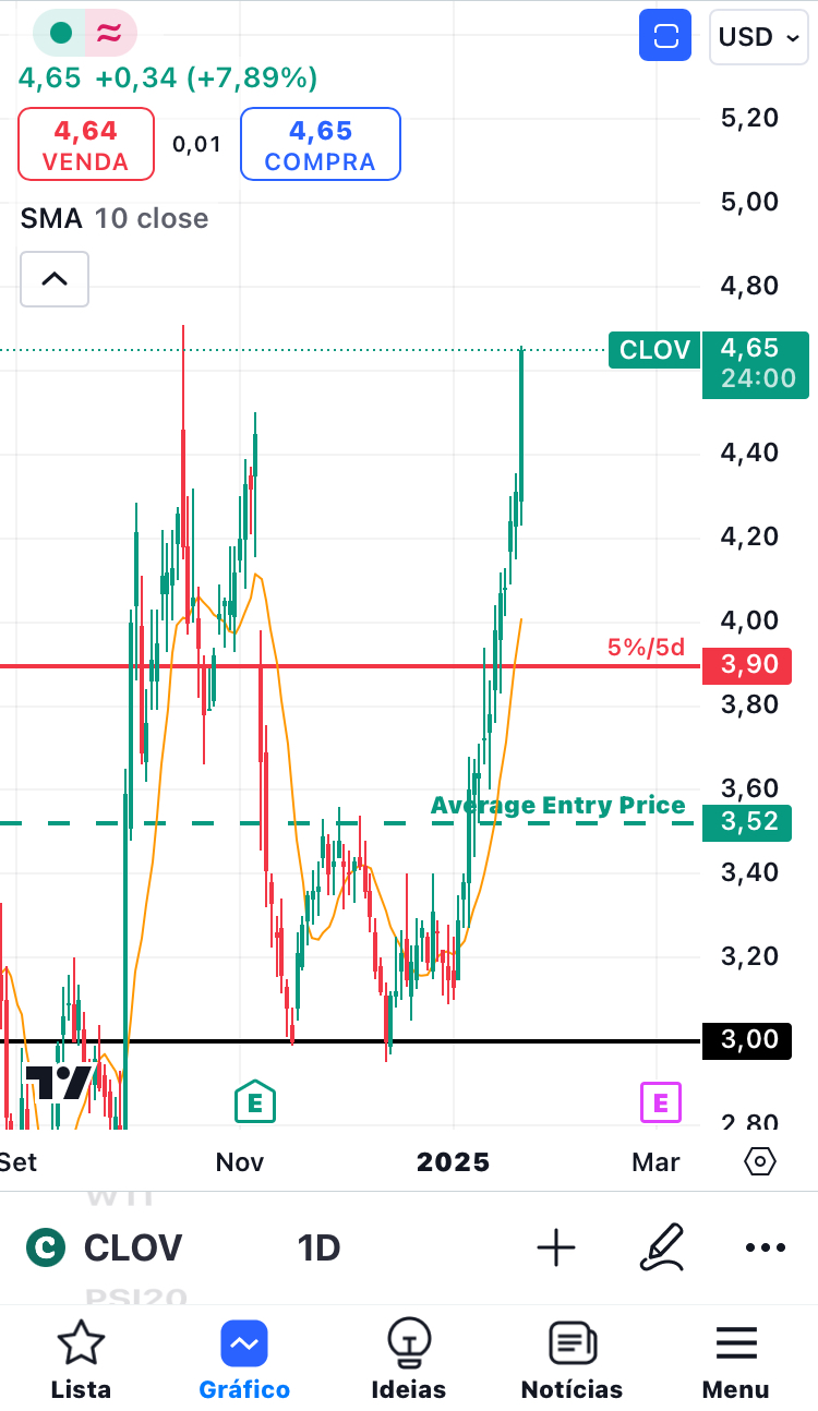 CLOV (Clover Health Investments Corp.), que passou de $3,11 para $4,08, com uma valorização de +31,1%.