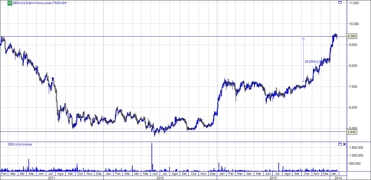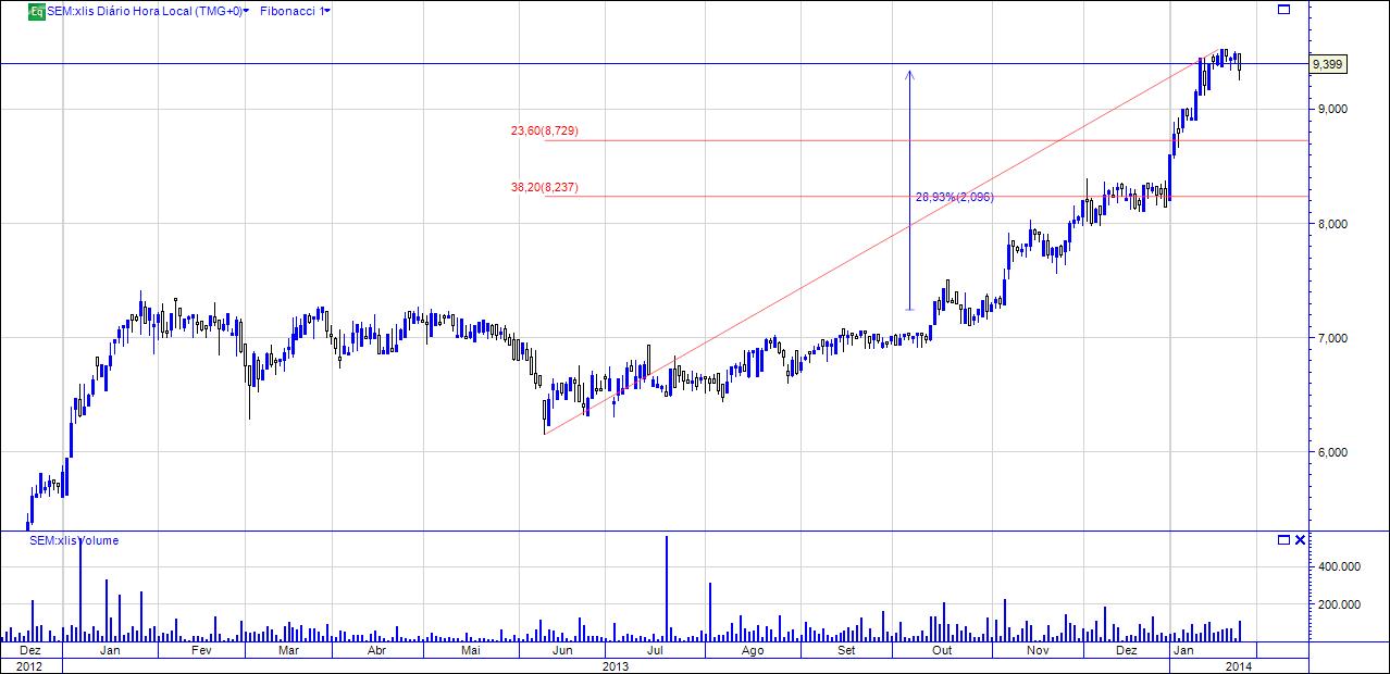 Na verdade desde o verão de 2012, a Semapa quase que duplicou o seu valor em bolsa, vivendo desde ai um fantástico bull market, sem ter registado praticamente nenhum ajustamento significativo. De facto apenas lateralizou entre jan 2013 e ago 2013, retomando novamente as subidas.