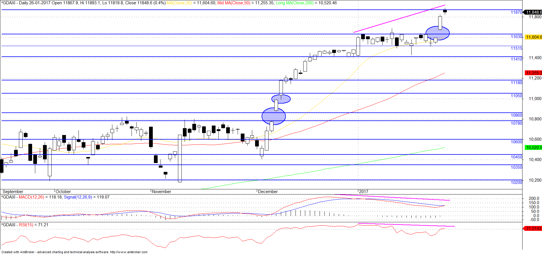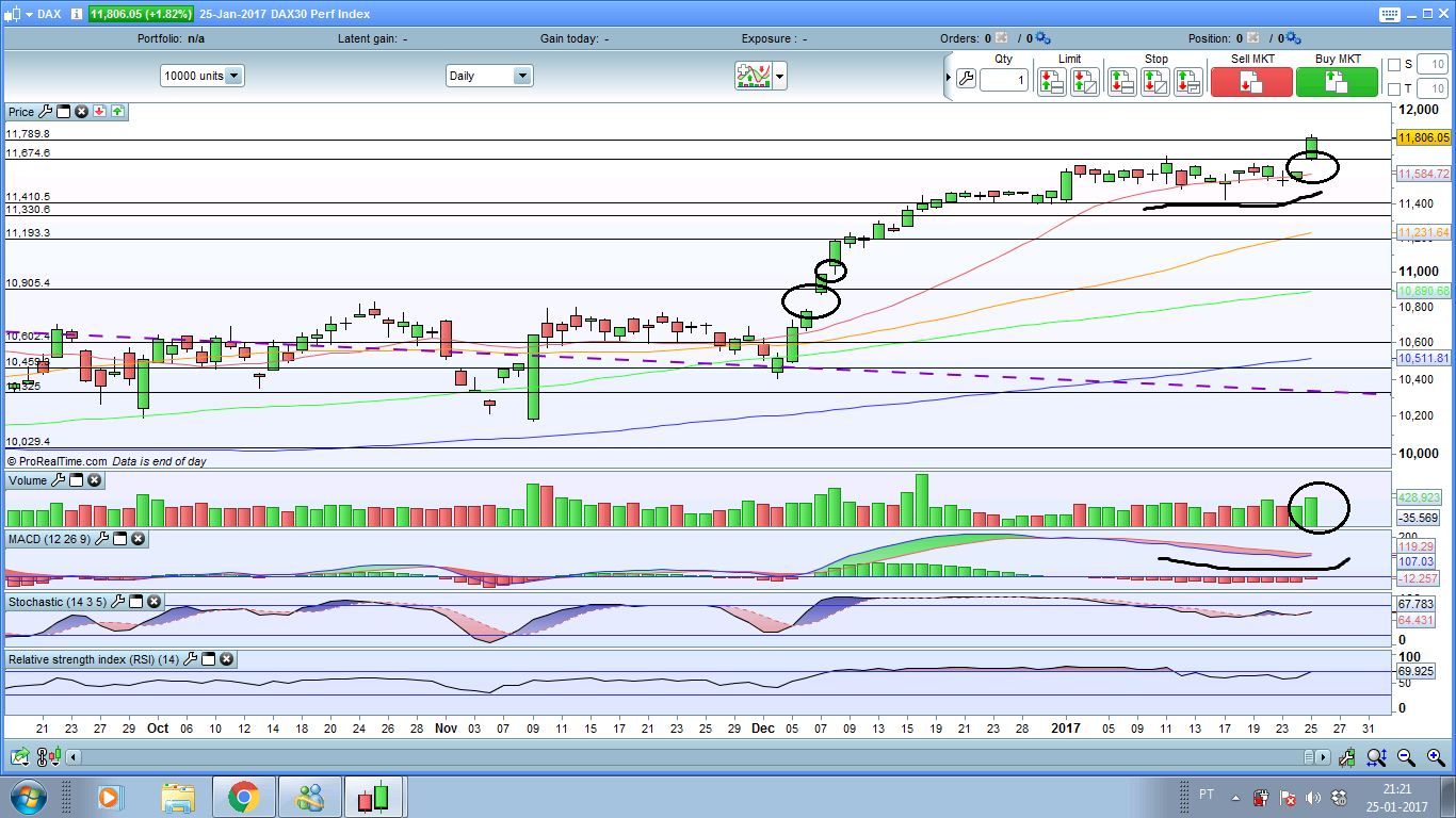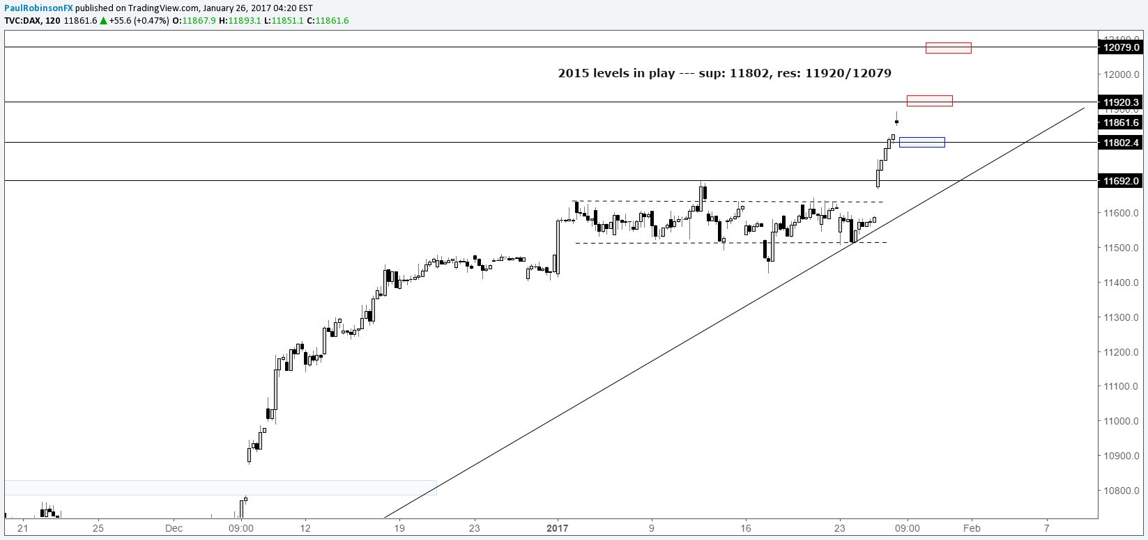 "Finally, the DAX, after three weeks of consolidation it broke free, and with an exclamation point. The 1.8% rip took the DAX to the first level of resistance we have on our charts at just over 11800. Today, it’s working on moving to the next level around the 11920 mark. These levels come by way of a series of lower highs created during 2015 on the descent from record levels. On a move beyond 11920, we will then look to 12079.