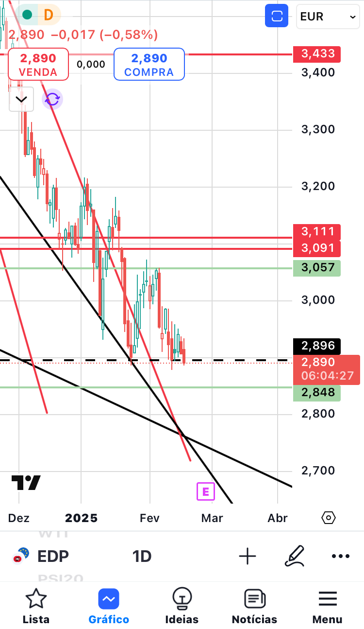 Vamos ver o que vai dar este suporte da EDP. Ainda nao esta quebrado, isso é positivo, mas eu nao arrisco o meu dinheiro nisto para já
