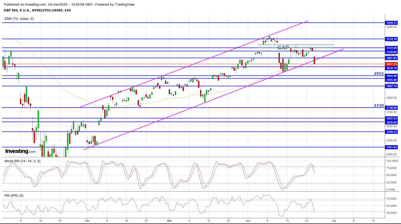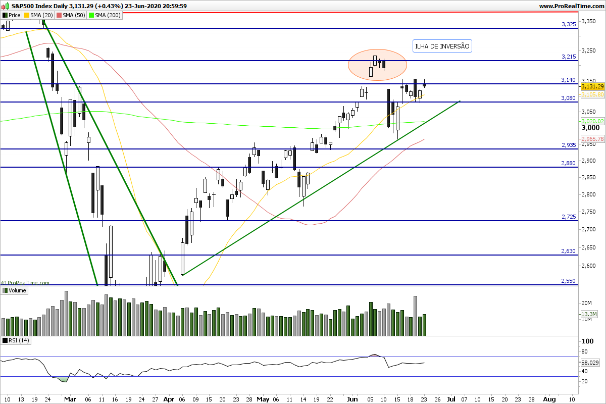 1ª zona de suporte 9550pts no NAS...