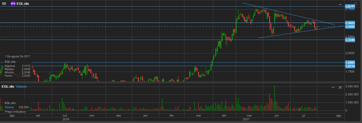 A minha expectativa é que face aos fundamentais e expectáveis resultados a apresentar prejuízos este movimento seja revertido nos próximos meses e volte até Outubro para o retângulo em que andou durante meses .