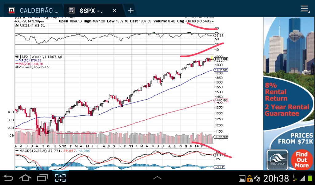 Os estimuloso já estão a ser retirados à meses, não me parece que o mercado vá esperar até 2016 para fazer o que tem a fazer que é presentar-nos com um méga topo multi anual visível num gráfico de 10 anos que não será atingido durante muito tempo (pelo menos 3 anos). Se estivesse atento no ultimo ano tinhas reparado que boas noticias são boas noticias e más noticias são boas noticias, ou seja, é sempre subir.